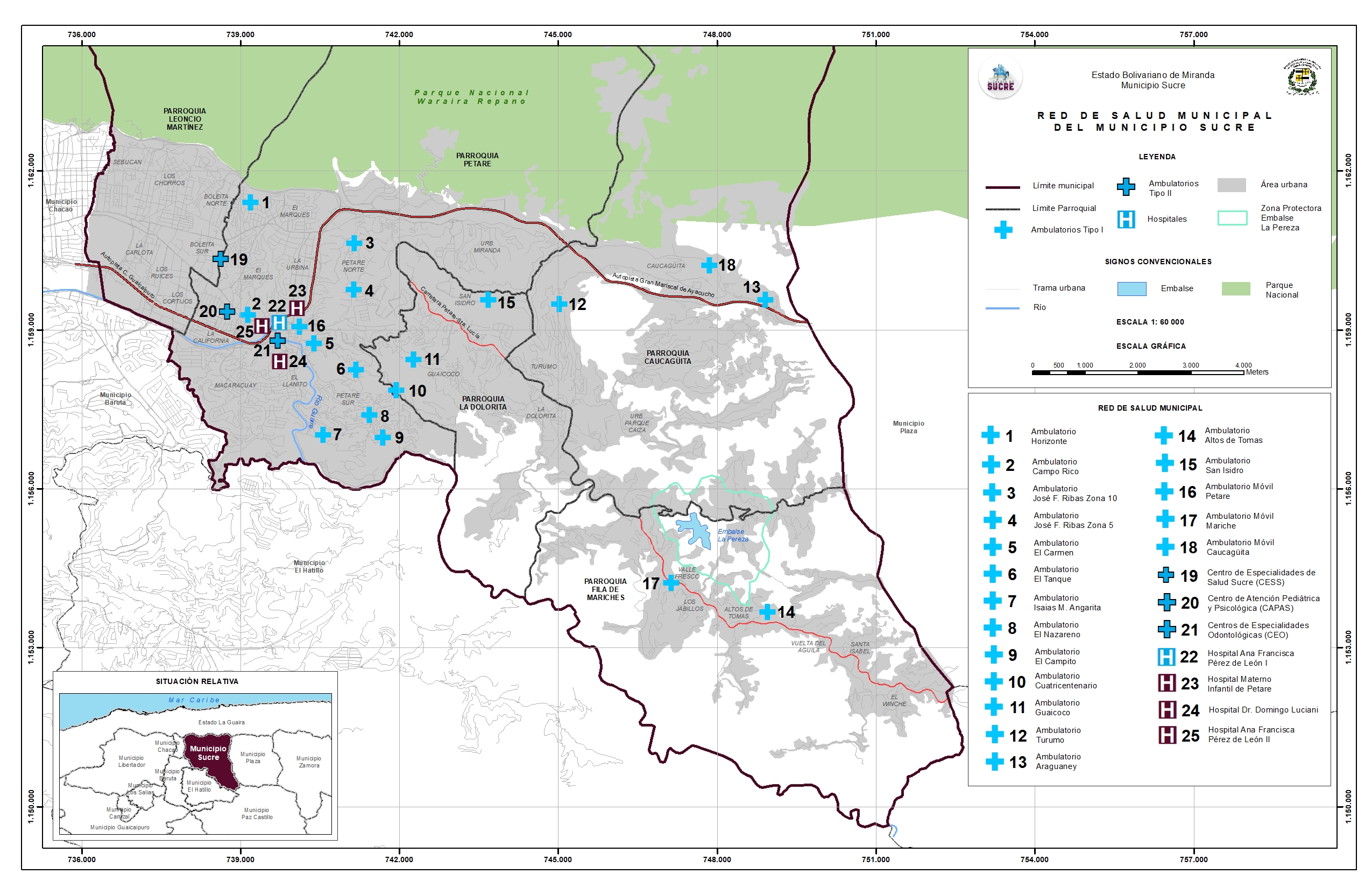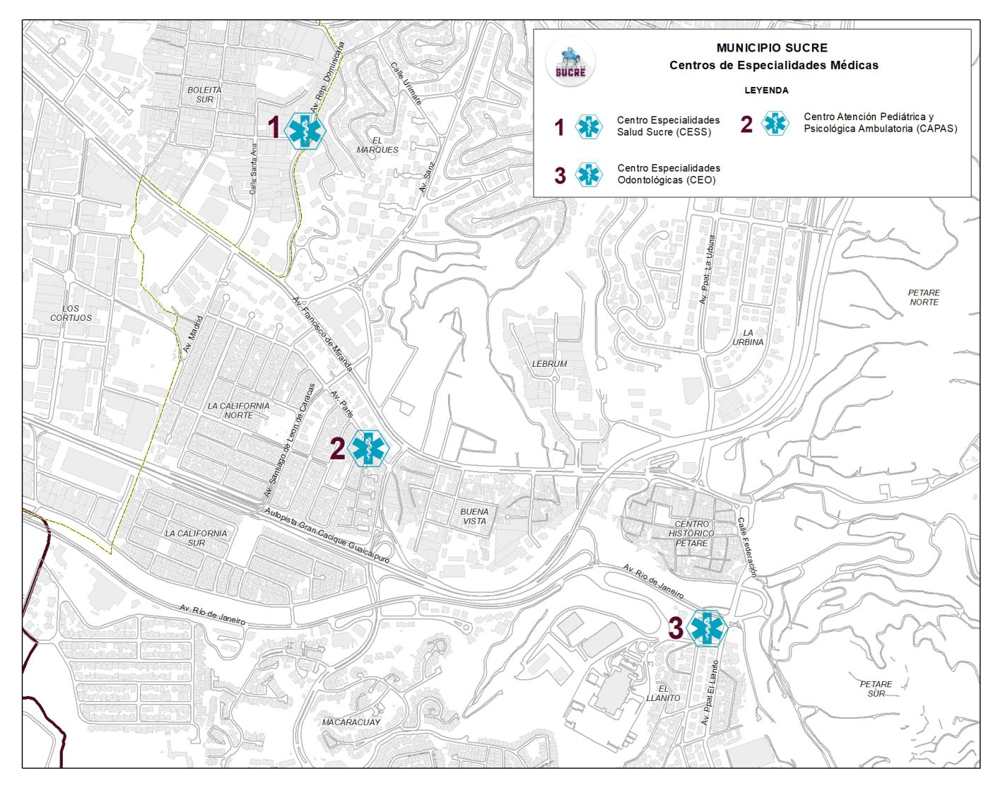 Los ámbitos de cobertura de estas unidades se dividen de la siguiente manera: URISUCRE, cubre las parroquias Leoncio Martínez y Petare. URIMARICHE, cubre las parroquias de Fila de Mariches, La Dolorita y Caucagüita.