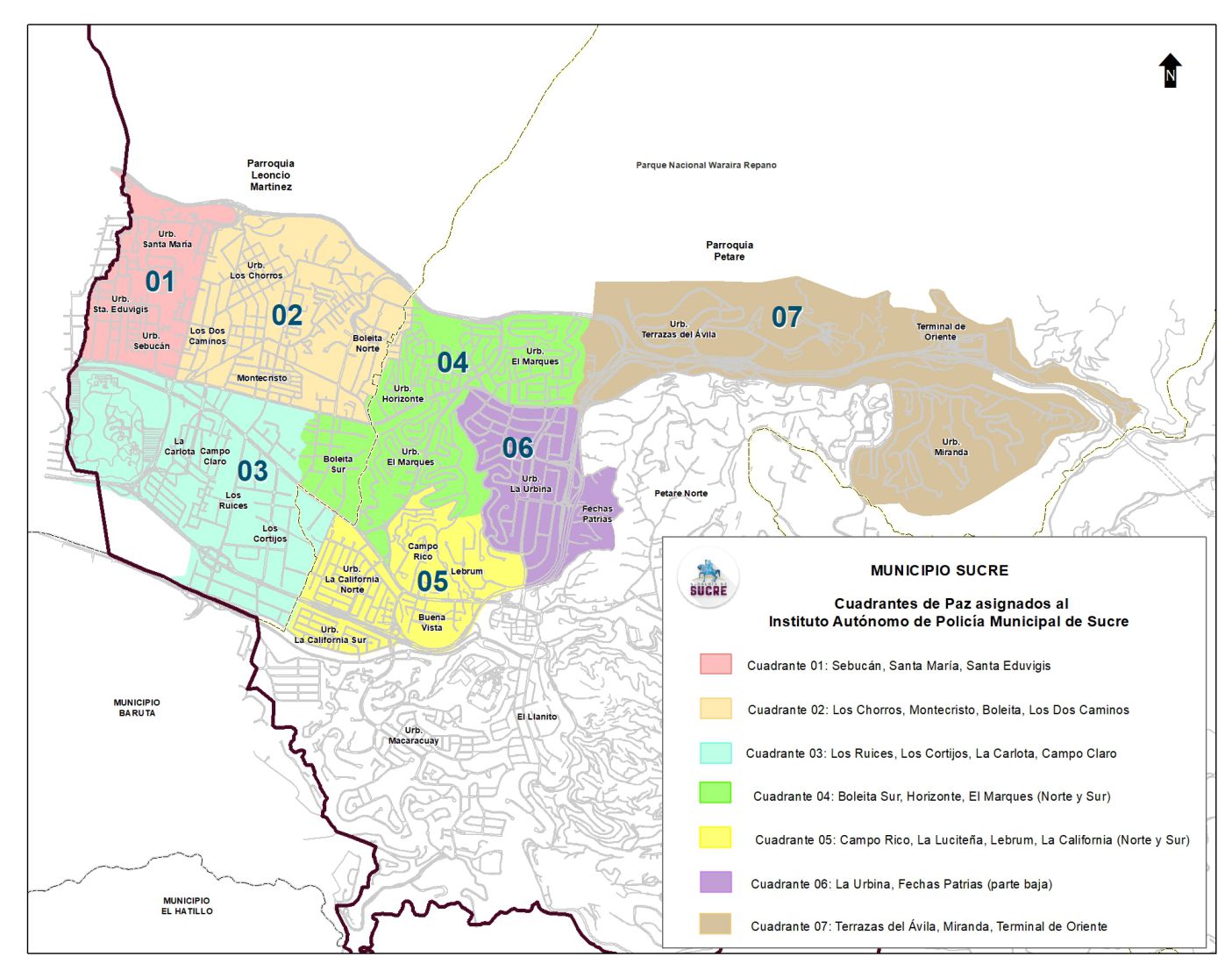 Cuadrante 28: El Quintana, Antonio Clemente, Waraira Repano, La Cuesta, Llano Alto, Los Alpes, El Maizal, El Milagro, San Isidro.